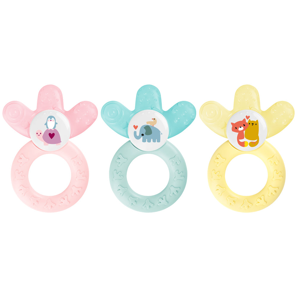 A rágóka különleges formájának köszönhetően a hátsó fogínyrészeket is könnyen eléri. A változatos, strukturált felület nemcsak segíti a fogzás időszakát, hanem izgalmas elfoglaltságot is nyújt a babának. Anyaga BPA-mentes, így biztonságos a kicsik számára.