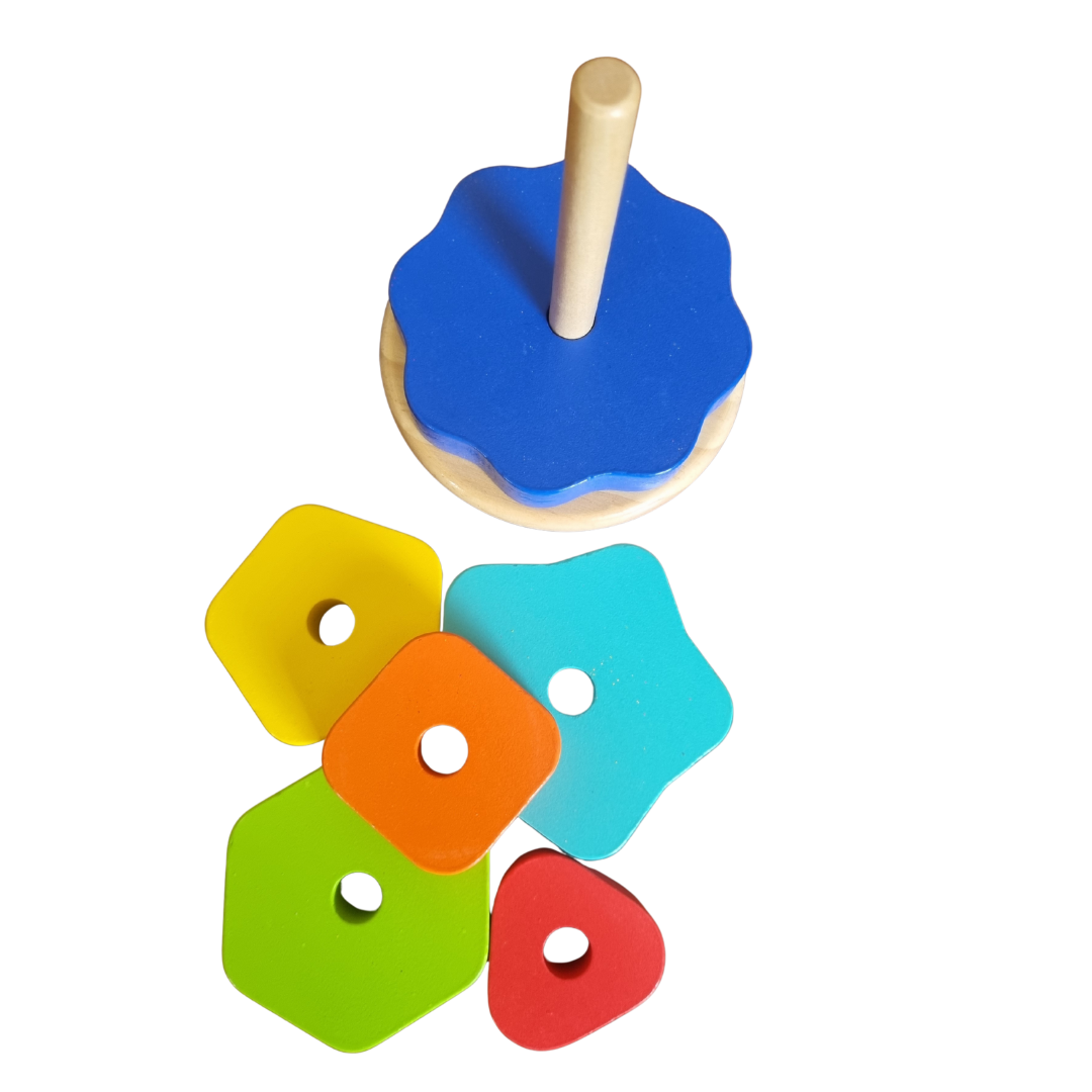 Az eltérő alakú elemeket egyesével kell a rúdra helyezni, míg az összes el nem fogy.