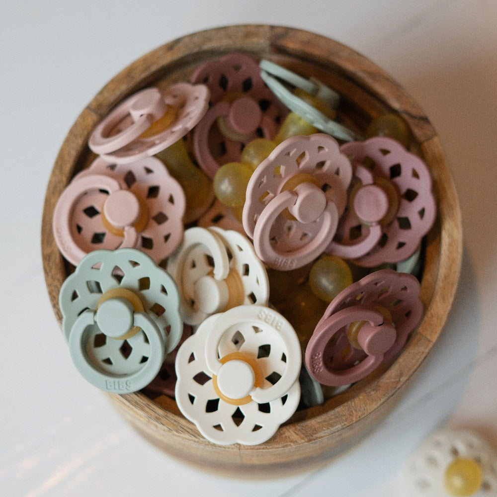 BIBS Boheme natúr kaucsuk játszócumi 6-18 hó - 2 db (cseresznyevirág, hamvas lila)