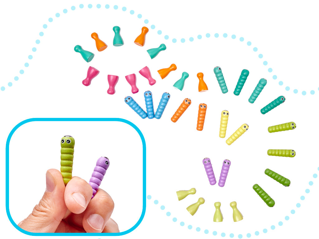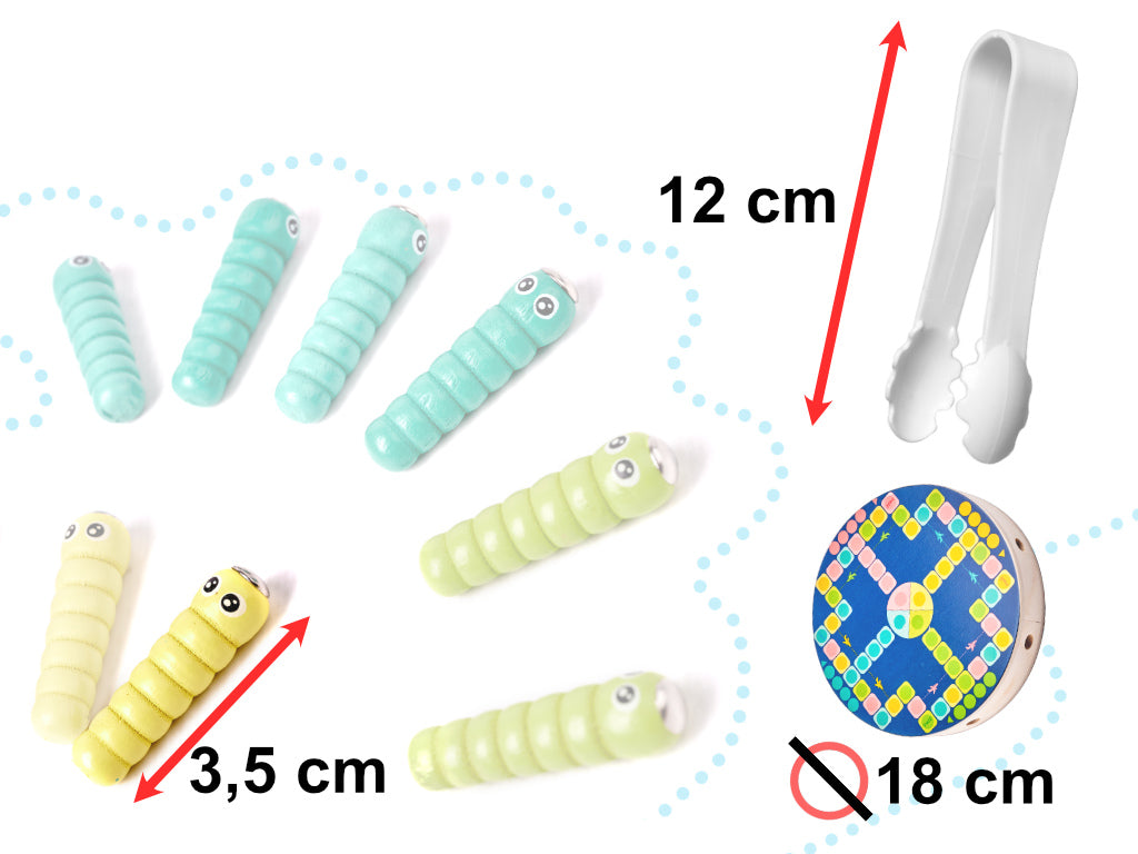 A halfogás és a csipesszel mozgó elemek kiválóan fejlesztik a gyerekek motorikus készségeit és kézügyességét, miközben fejlesztik a szem-kéz koordinációt és a kéz precizitást. Minden elem kellemes színben pompázik, vonzza a kisgyermek figyelmét és inspirálja a játékot.