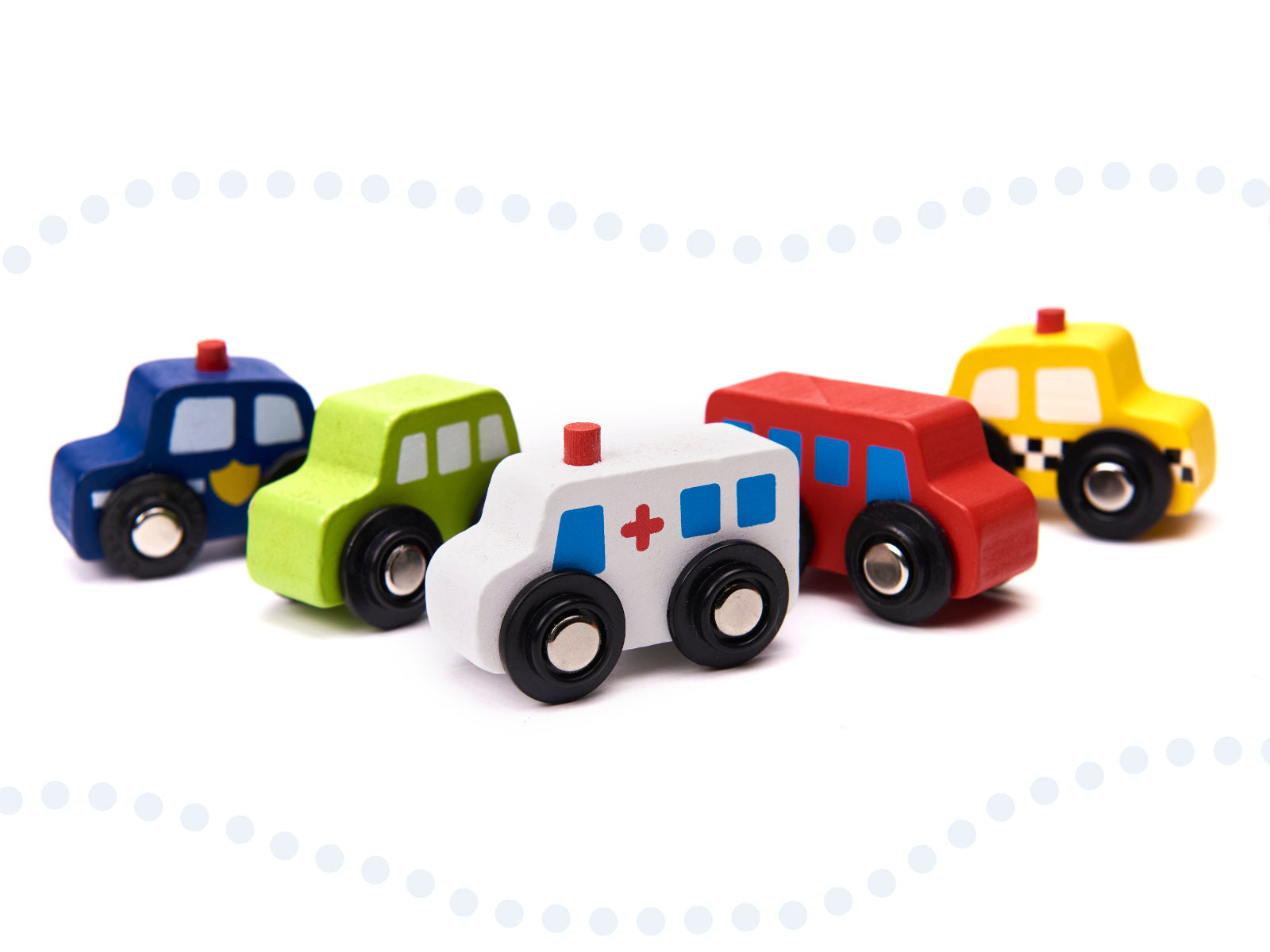 - 8 db jármű köztük egy mozdony két kocsival, egy mentőautó, egy rendőrautó