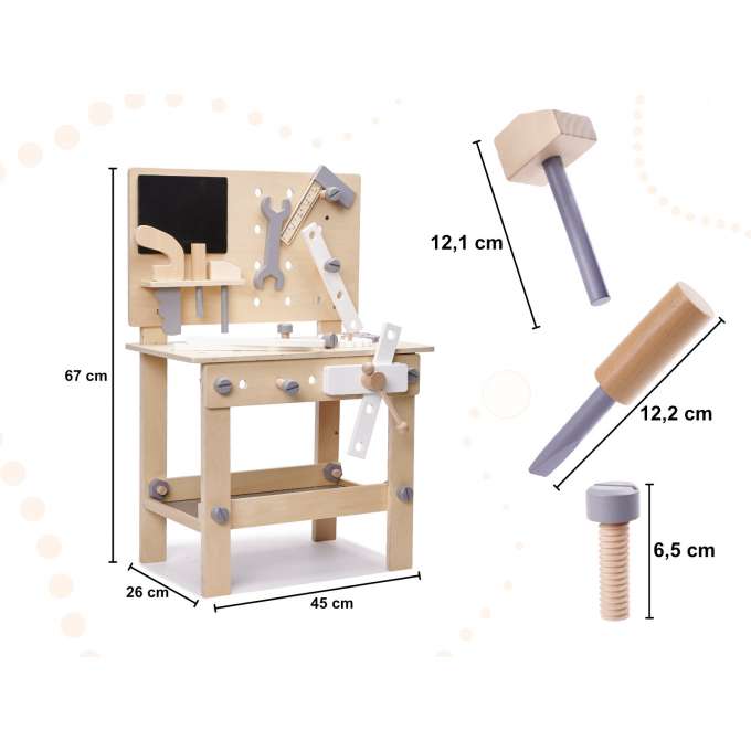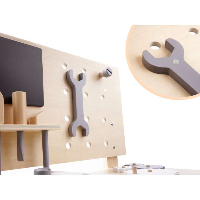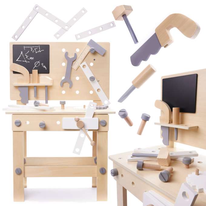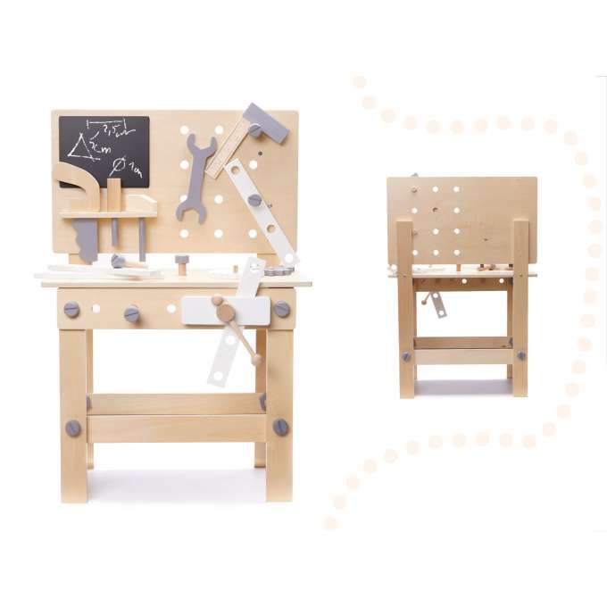 Barkácsolj és szerelj úgy, mint a nagyok! Kiváló minőségű anyagok felhasználásával készült barkácsasztal, amely sok-sok kiegészítőt tartalmaz, így még izgalmasabbá téve a játékot gyermeked számára!