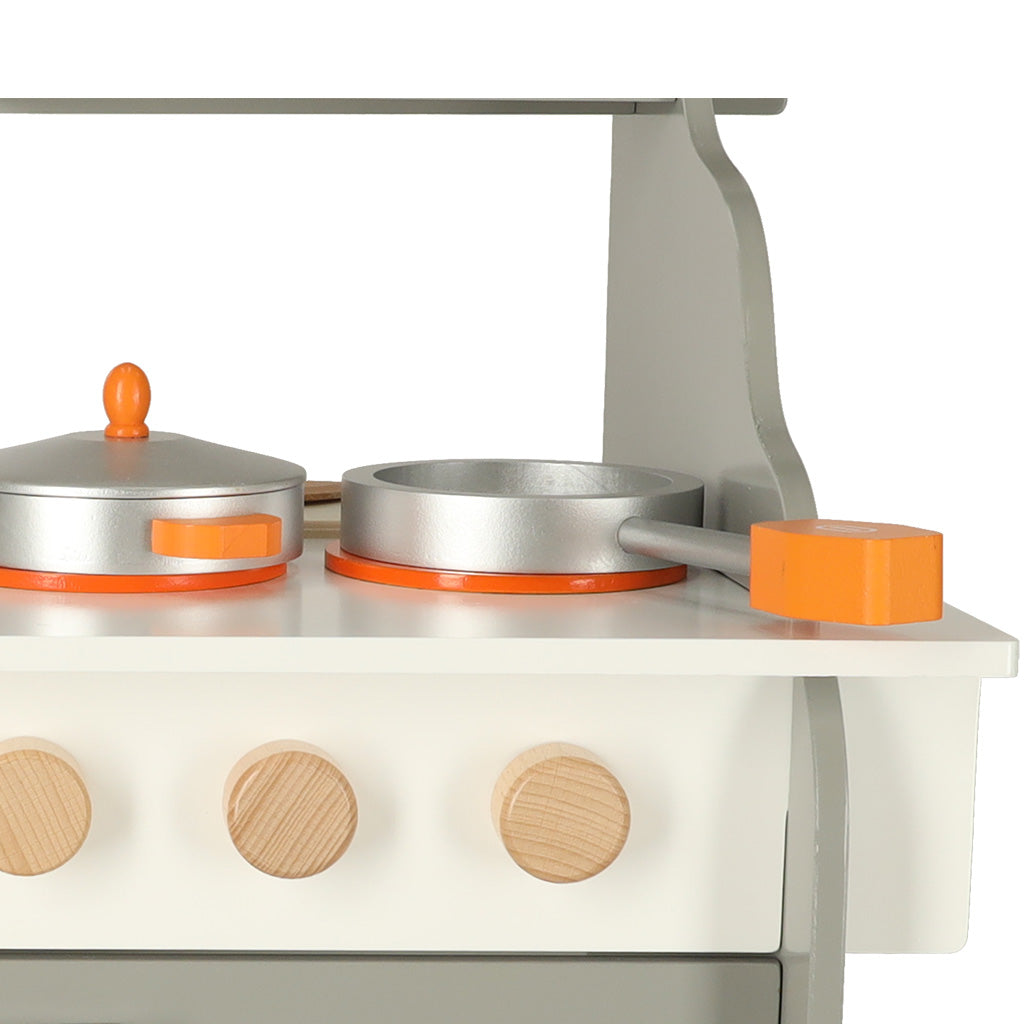 Ez a fa konyha minden gyerek számára izgalmas játékélményt kínál, hiszen valósághű elemekkel van felszerelve, mint például egy beépített sütő és mosogató. A játék segít a gyermekeknek megismerkedni a konyhai tevékenységekkel, miközben fejleszti kreativitásukat és finommozgásukat.