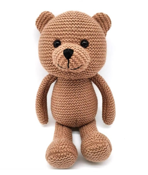 Pihe- puha horgolt plüss mackó, kellemes- babák számára biztonságos fonalból.