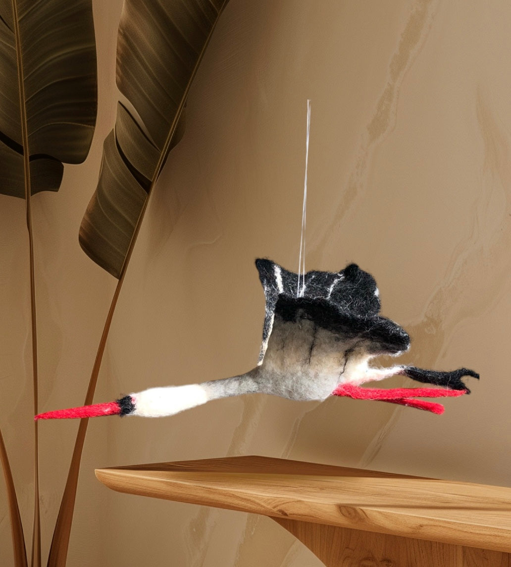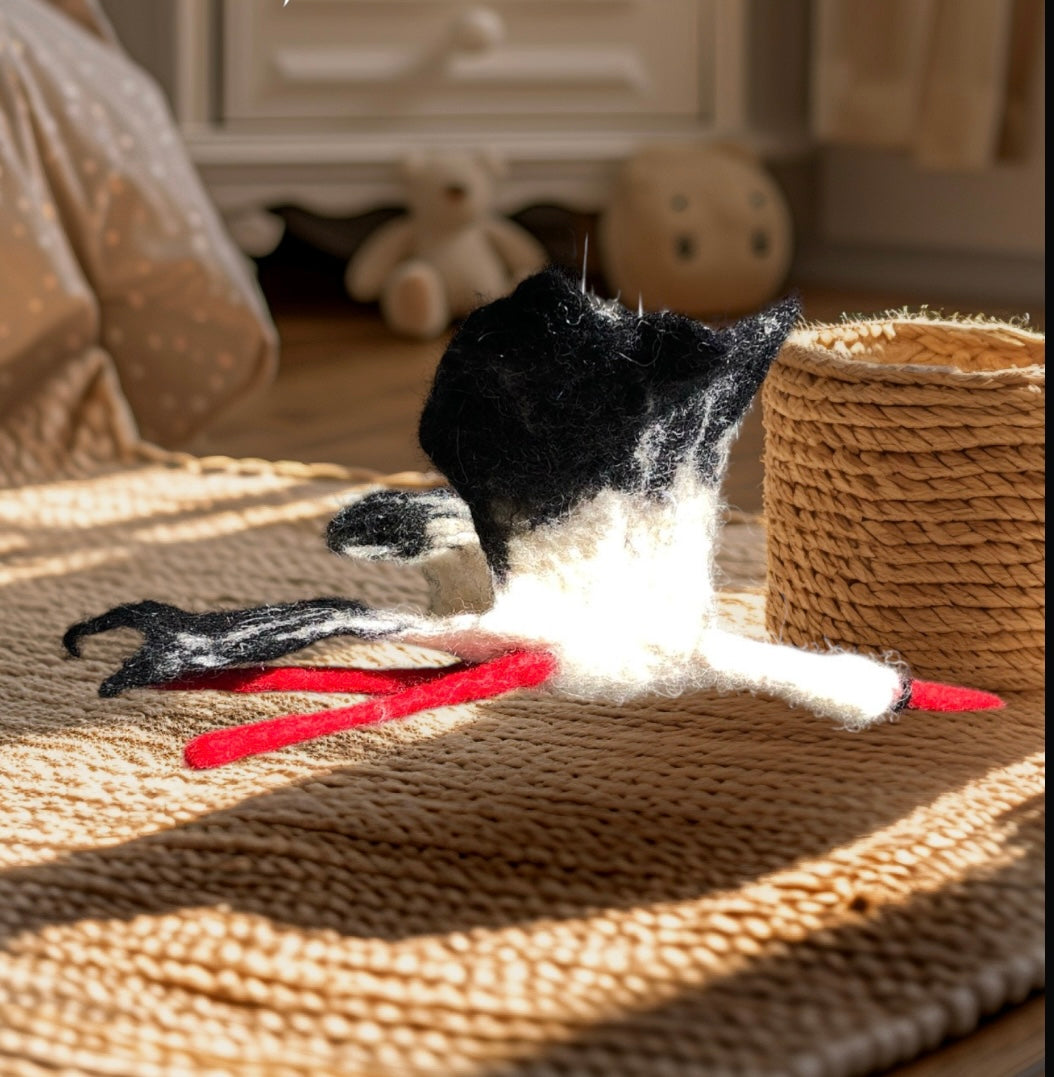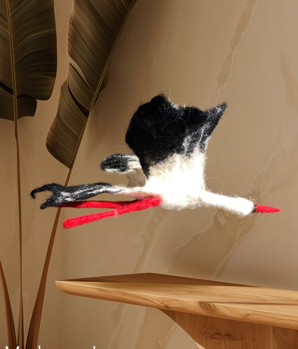 merinó gyapjúból vizes nemezeléssel készített barátságos gólya