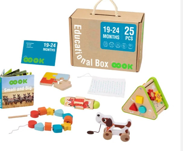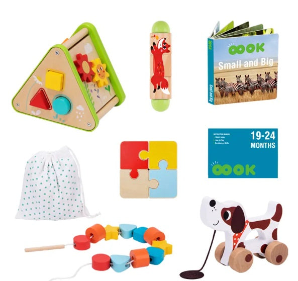 Fejlesztő boxunk 19-24 hós babák számára gondosan átgondolt játékelemek és játékok kombinációja. A fejlesztő játékok felkeltik a babád figyelmét, alapos felfedezésre hívják, fejlesztik a készségeket, serkentik az érzékeket és az elmét és hozzájárulnak a megfelelő kognitív fejlődéshez. A játék révén a csecsemők javítják a motorikus készségeket, a logikus gondolkodást, a szem és a kéz koordinációját és növelik szenzomotoros intelligenciájukat. Az fejlesztő doboz megkönnyíti az ajándék kiválasztását, a legmegfelelőbb játékokat tartalmazza az adott korú gyermekek számára.