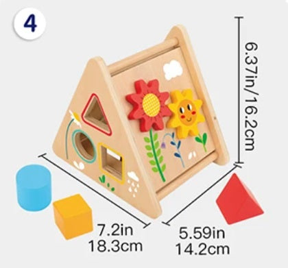 A minőségi fából készült Montessori játék rengeteg lehetőséget kínál a játékra. A háromszög minden oldala egyedi és új kalandot kínál.