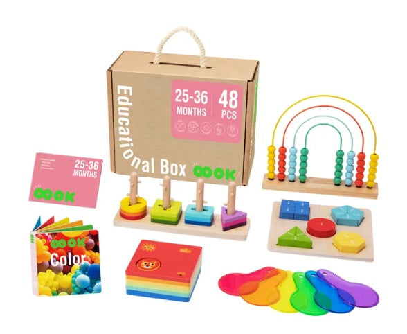 Fejlesztő boxunk 25-36 hós babák számára gondosan átgondolt játékelemek és játékok kombinációja. A fejlesztő játékok felkeltik a babád figyelmét, alapos felfedezésre hívják, fejlesztik a készségeket, serkentik az érzékeket és az elmét és hozzájárulnak a megfelelő kognitív fejlődéshez. A játék révén a babák javítják a motorikus készségeket, a logikus gondolkodást, a szem és a kéz koordinációját és növelik szenzomotoros intelligenciájukat. Az fejlesztő doboz megkönnyíti az ajándék kiválasztását, a legmegfelelőbb játékokat tartalmazza az adott korú gyermekek számára.
