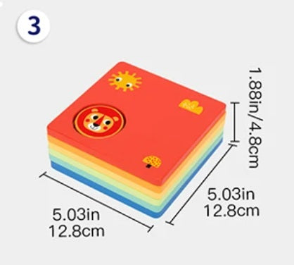 Egy 6 darabos, geometrikus formákkal, beilleszthető állatokkal egy kreatív táblakészlet, amely edzi a gyermek elméjét.