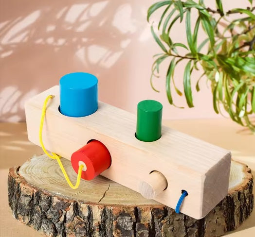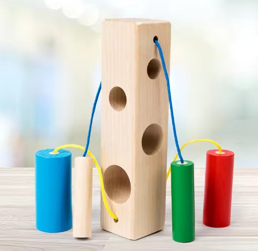 A különböző méretű hengerek megfelelő helyre illesztése segíti a szem- kéz koordinációt, fejleszteni a koncentrációt és finoman dolgozik a finommotorika megfelelő kialakulásában is.