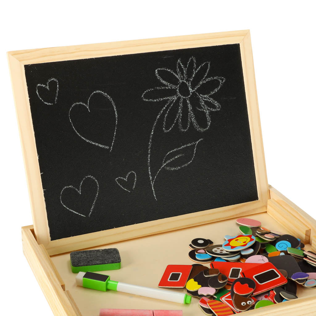 Tartós fából készült, 30 x 22 cm-es méretű és 110 darabos mágneses tábla szórakoztató módon fejleszti a gyerekek művészi készségeit és tudását.