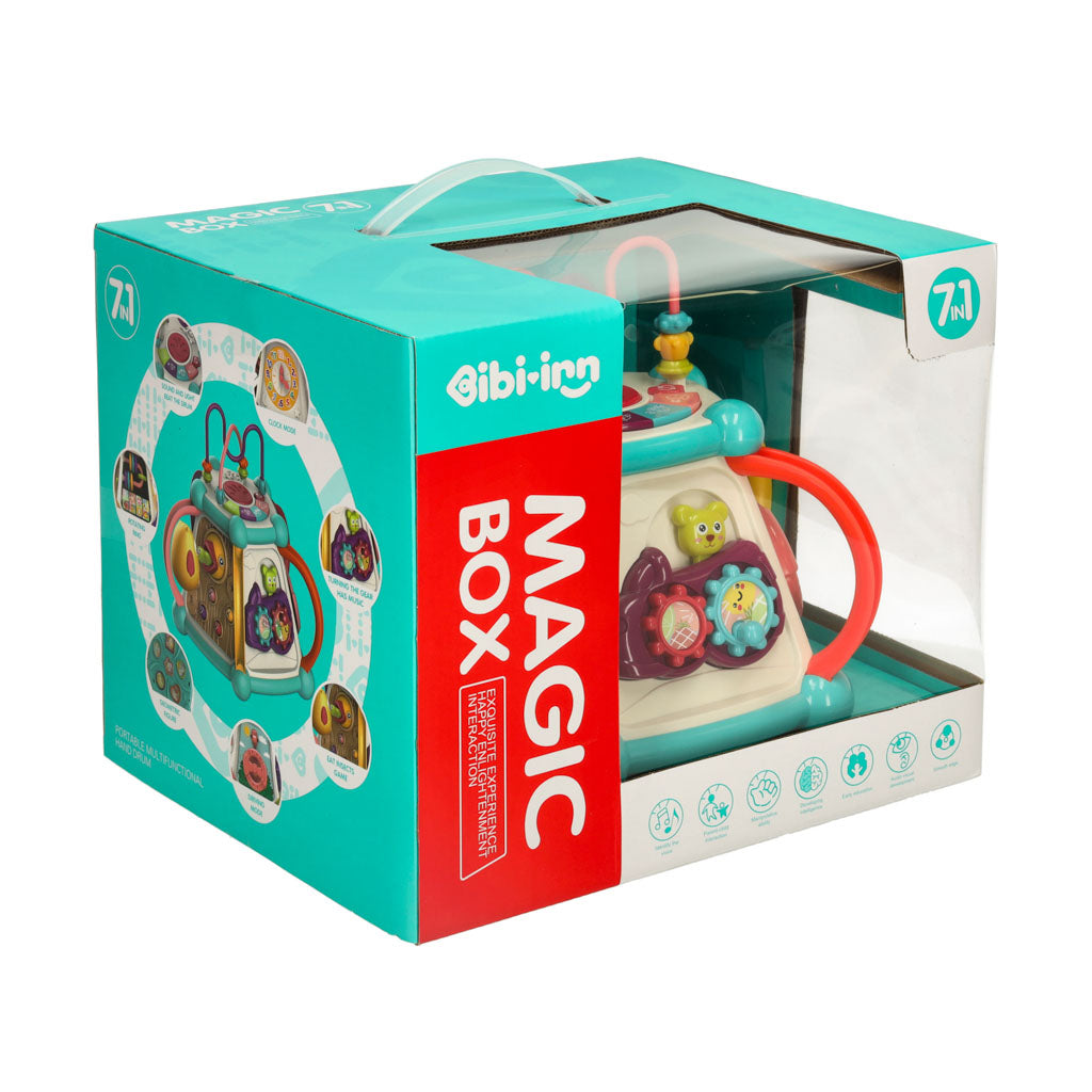 A játék színes fogaskerekeket, formabedobót, „etetős játékot”, autókormányt, labirintust és számos mozgó elemet tartalmaz. A termék segíti a kéz-szem koordináció, a kognitív és motoros készségek fejlesztését. A zongorarész három AA elemmel működik (nem tartozék). A készlet tartalmaz 6 bedobó formát, 5 kukacot és egy baglyot.