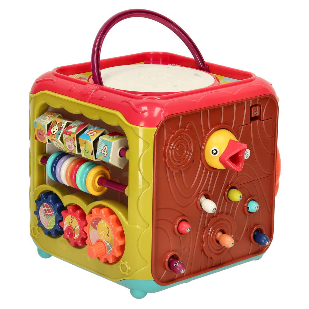 Az oktatókocka olyan játék, amely a világ felfedezését megkezdő gyermekek számára készült. A kocka minden oldala különböző interaktív elemet kínál, változatos szórakozást nyújtva. A kocka színes zongorát tartalmaz számokkal, mozgatható ajtót, számos csúsztatható elemet, formabedobót, dobokat és egy „etetős játékot”. A zongora egy AA elemmel működik (nem tartozék). A készlethez színes, különböző formájú blokkok, mágneses kukacok és egy hintázó bagoly is tartozik.