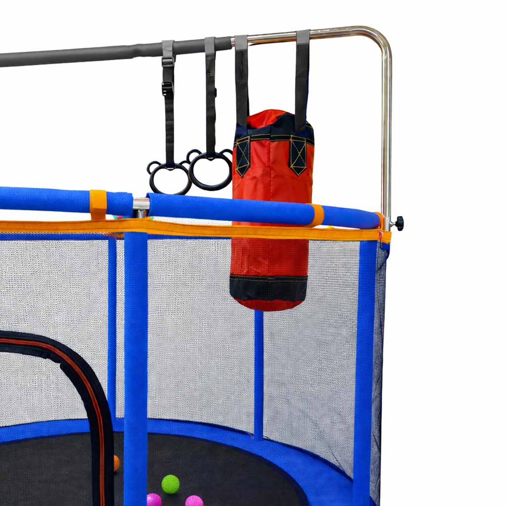 Ez nem csak egy egyszerű trambulin hanem egy igazi kerti játszótér. A szett része kosárlabda palánk bokszzsák függeszkedő karikák és egy kényelmes függőágy is. Így a gyerek nemcsak ugrálhat hanem dobhat kosárra bokszolhat vagy pihenhet is játék közben.