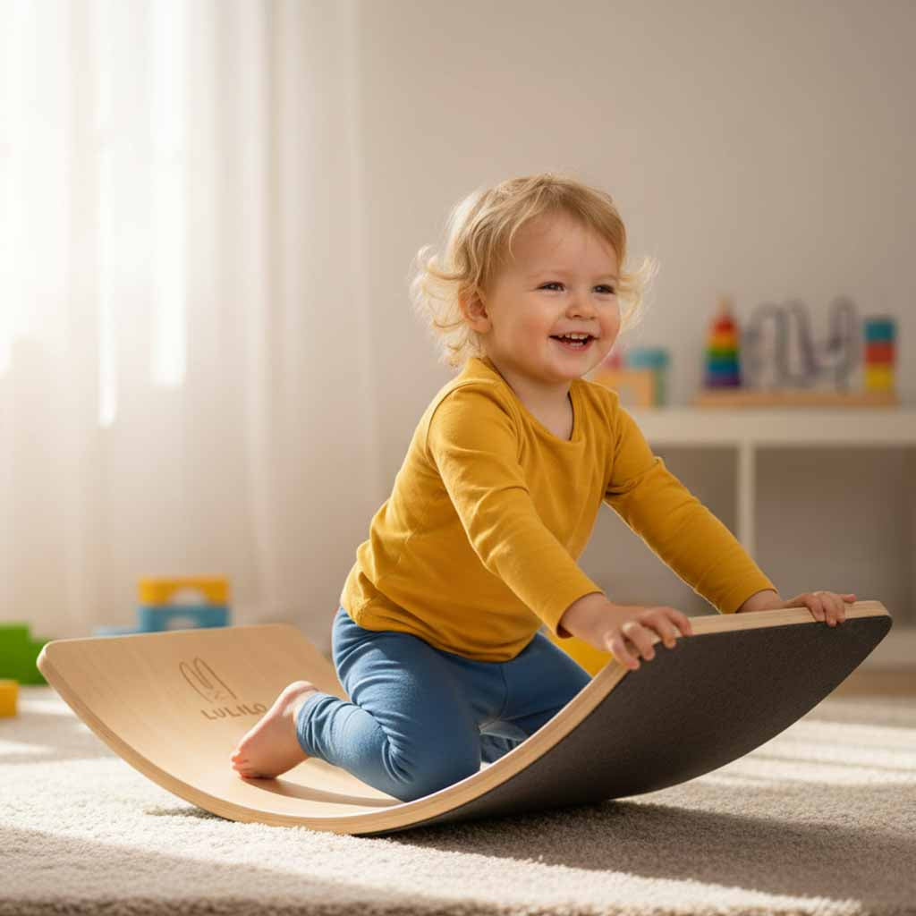 A Lulilo egyensúlytábla egy rendkívül egyszerű, mégis sokoldalúan használható játék és fejlesztőeszköz, amely gyorsan a gyerekek és a felnőttek kedvencévé válik. A gondosan ívelt fa lap játékos mozgásra ösztönöz, miközben erősíti a láb, a has és a hát izmait. Rendszeres használata segíti a helyes testtartás kialakulását és az egyensúlyérzék fejlődését, így remek előkészítés lehet például síeléshez vagy deszkás sportokhoz.
