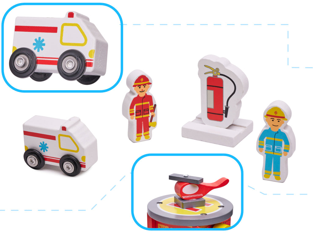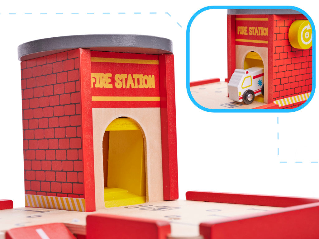 Fa tűzoltóállomás kiegészítőkkel.