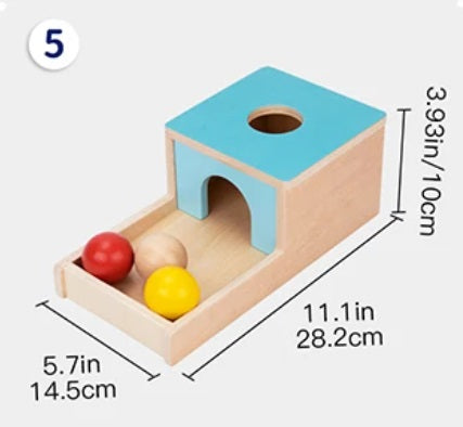 Amikor labdákkal és dobozzal játszanak, a gyerekek gyakorolják a fogást, a szem és a kéz koordinációját, a motoros készségeket és a logikus gondolkodást. A játék ösztönzi a gyermekek kíváncsiságát, megtanítja őket koncentrálni és türelmesnek lenni.