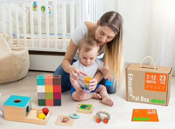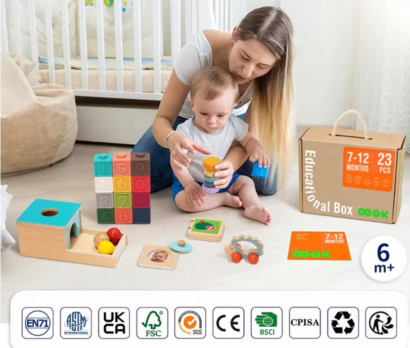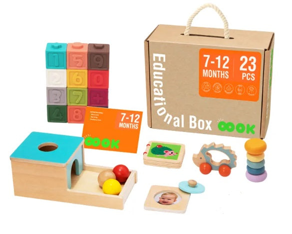 Montessori fejlesztő box, játékdoboz 7-12 hó