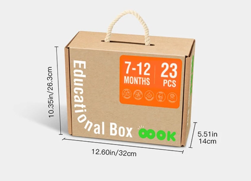 Fejlesztő boxunk 7-12 hós babák számára gondosan átgondolt játékelemek és játékok kombinációja, amely használható 6-7 hónapos kortól fogva 1 éves korukig. A fejlesztő játékok felkeltik a babád figyelmét, alapos felfedezésre hívják, fejlesztik a készségeket, serkentik az érzékeket és az elmét és hozzájárulnak a megfelelő kognitív fejlődéshez. A játék révén a babák javítják a motorikus készségeket, a logikus gondolkodást, a szem és a kéz koordinációját és növelik szenzomotoros intelligenciájukat. Az fejlesztő doboz megkönnyíti az ajándék kiválasztását, a legmegfelelőbb játékokat tartalmazza az adott korú gyermekek számára.