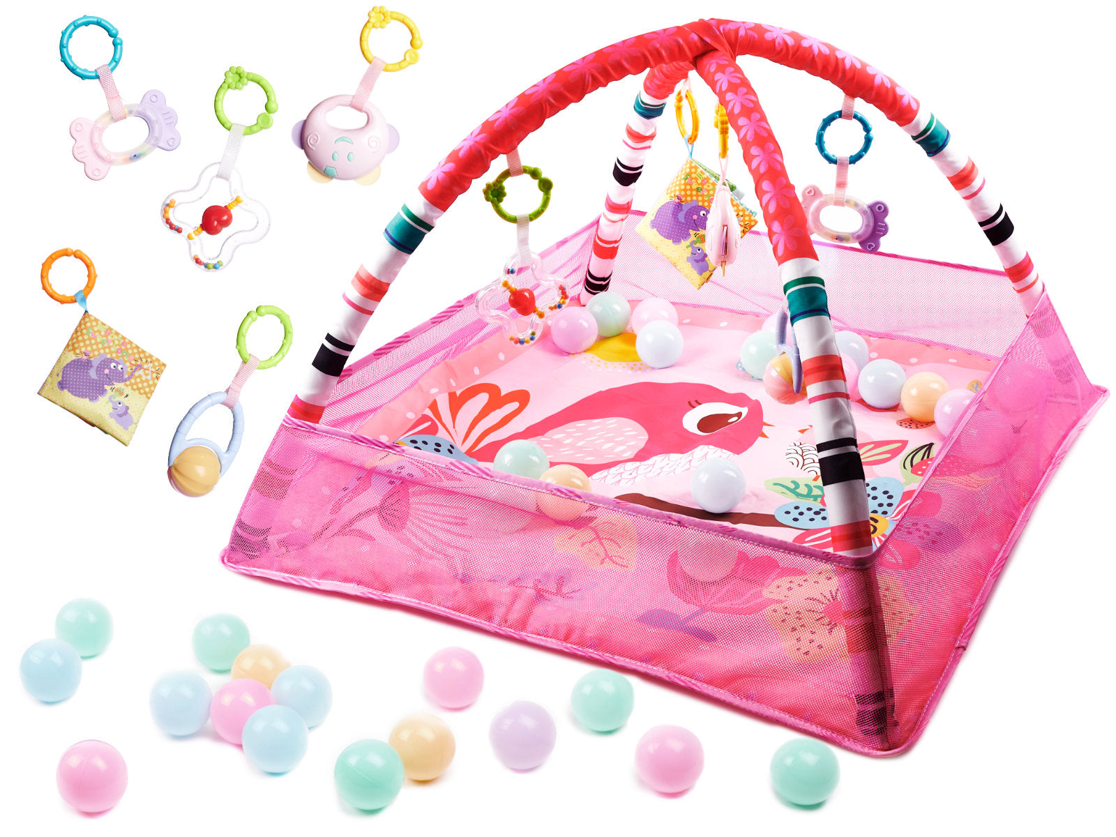 Oktató játszószőnyeg babáknak, rózsaszín – Sokfunkciós fejlődést támogató matrac