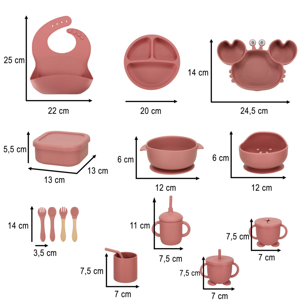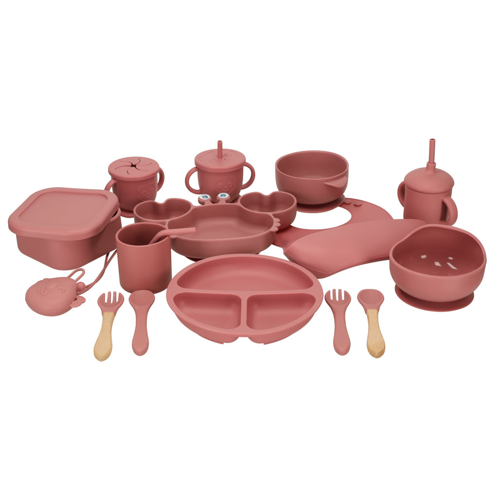 Szilikon étkészlet gyerekeknek – 19 darabos, sötét rózsaszín szett