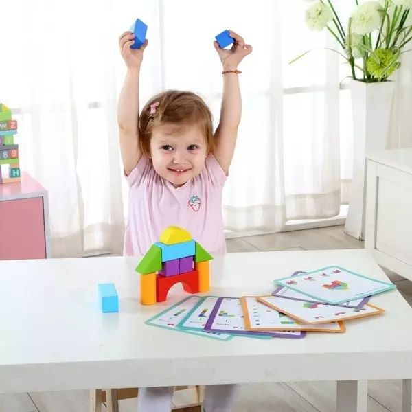 A szett nemcsak különböző formájú, színes építőelemeket tartalmaz, hanem feladatkártyákat is, amelyekkel különböző nehézségi szinteken próbálhatják ki magukat a kis várépítők.